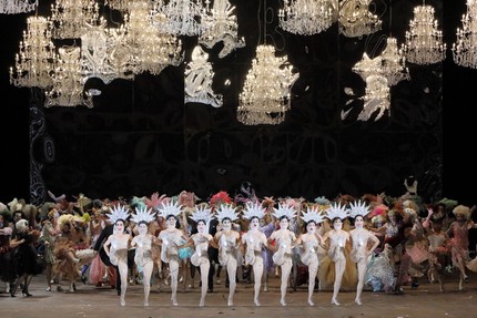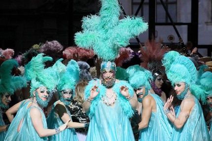 Танцы, крики, вальс, канкан, перья, стразы, шум и гам, — всё было прекрасно (хореограф Отто Пихлер — прямо молодец), включая большое количество травестийного и занимательного контента от снежинок мужского пола до раскачивающегося на люстре Айзенштейна (не очень понятно, чего он забыл на люстре, но как самодостаточный трюк в конце II акта это было хорошо).