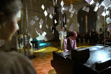 Перечислить весь ансамбль – задача неблагодарная. Но сила этого проекта – именно в его ансамблевости, в безупречной разыгранности как по нотам, в гармонии всех его сюжетных пластов, визуального ряда и драматургии. Постановочно-артистический альянс единомышленников сложился невероятно большой – огромный! И альянс, представивший феномен Рахманинова через мгновения истории в окружении его семьи, друзей и коллег по искусству состоялся! Исторический музыкальный фон эпохи композитора проступает в спектакле в живом звучании его фортепианных опусов, романсов и оперных арий в сопровождении фортепиано, и действо на трех сюжетных тропах, разыгрываемое в девяти пространствах Петровского путевого дворца, вбирает в себя в общей сложности одиннадцать оригинальных сцен. А какую из троп выберете вы, зависит только от вас…
