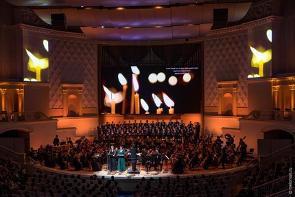 Автором идеи и режиссером акцентированно-мощного «аудиовизуального» прочтения «Реквиема» Верди на главной филармонической площадке Москвы стал Сергей Новиков. Он же стал и автором русского текста, справившимся с этой сверхзадачей изумительно филигранно и поэтически вдохновенно, ведь в вокально-хоровой музыке важен не только смысл, но и метр. В тандеме с ним выступил видеохудожник Дмитрий Костяев, а высшим духовным символом сего проекта, вечной сущностью, воплощенной в каменном зодчестве, стал монументальный Исаакиевский собор. Этот крупнейший православный храм Санкт-Петербурга во время войны пострадал от бомбежек и артобстрелов, от холода и сырости, но, обновленный, сегодня поражает строгостью и величием классической архитектуры.