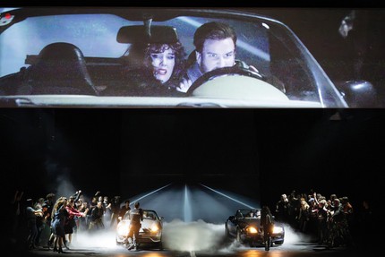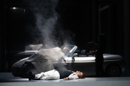 Новый спектакль Мари-Эвы Синероль по опере Ш. Гуно «Ромео и Джульетта» в «Театре ан дер Вин» начинается с автокатастрофы: перед нами два трупа, разбившихся во время опасного street-race. Как произошло это самоубийство главных героев, не так важно, потому что к концу спектакля режиссёр уже и сама забудет, о чём рассказывала в начале.