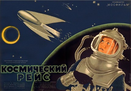 В СССР этому придавалось ещё и политико-идеологическое значение — пролетарское государство должно стать первым в постижении манящего неба. Вовсю печатались фантастические рассказы и повести, а журнал «Техника молодёжи» звал к покорению новых рубежей. Будущее рисовалось ярким и — грозным, сияющим и свежим.
