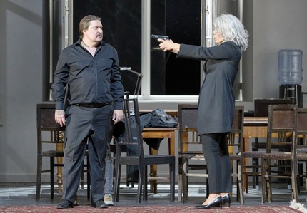 Именно профессионально-исследовательская журналистская деятельность Кундри логично обуславливает перенос действия II акта из ботанического борделя Клингзора (роскошная вокально-драматическая работа Вернера ван Мехелена) в редакцию его же глянцевого журнала, где юный Парсифаль подпадает под искушение променять свою пыточную судьбу сектанта-убийцы на красочную судьбу глянцевой модели-звезды.
