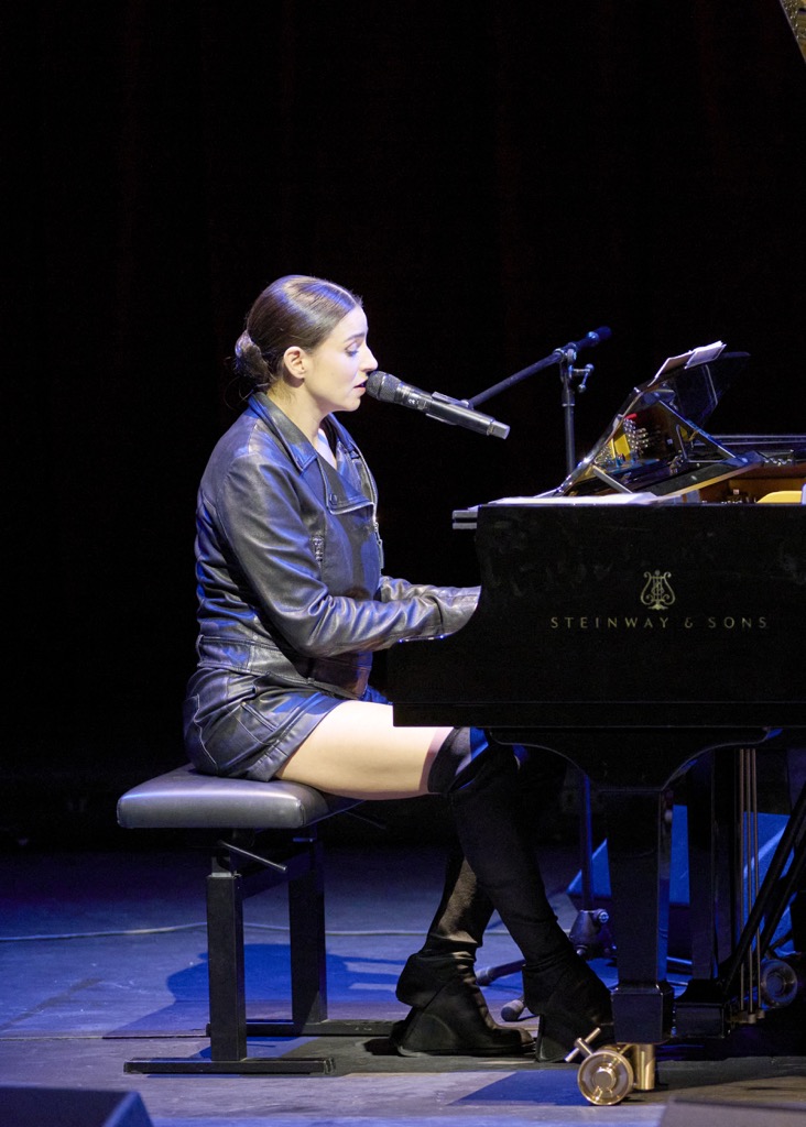 Первые несколько медитативных вокализов из армянского фольклора, композитора Александра Арутюняна, литовского композитора Юозаса Каросаса, и концертмейстера вечера британско-корейского пианиста Хён Ки Джу прозвучали из четырёх разных точек главного зала Венской оперы. Певица начинает концерт в лучах софитов на галёрке — среди самой демократичной и, как правило, самой благодарной публики. Потом появляется в ложе стоячих мест партера с «Этюдом» Габриэля Форе, после этого выходит в сам партер с вокализом Эйтора Вилла-Лобоса, виртуозно исполняя Бразильскую Бахиану № 5, и только потом выходит на сцену. Аплодисменты будто расстраивают певицу: ведь она не закончила свою вокальную исповедь! Но тут уже сдают нервы у концертмейстера Хён Ки Джу: