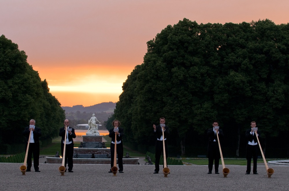 Перед началом концертов и во время антрактов у гостей фестиваля есть возможность свободно прогуливаться по публичным залам Баварского Версаля – замка Херренкимзее (осмотр личных покоев Людвига II не предусмотрен). В качестве капельдинеров здесь работает отдельно обученная и специально экипированная команда сотрудников, так что вы неизбежно окажетесь в атмосфере, пограничной как с эпохой галантного XVIII века, так и с веком технической революции.