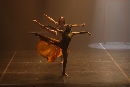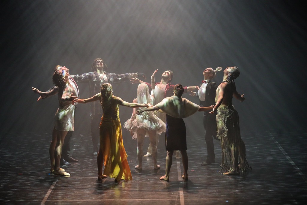 Приведем его полностью: «Наш герой по имени Данте – в полутьме: ему снится сон, в котором он видит себя в разных воплощениях и мирах. Видéния наполняют Данте яркими эмоциями – продолжением его страхов, страстей, слабостей. Всё это живет в его душе как клубок противоречий». В вечной темноте бескрайнего космоса «из темной неопределенной материи возникает человекоподобное создание. Восемь персонажей – восемь попыток творения, и только на девятой решится судьба Данте». А это уже первая картина, и к финалу (к «Катарсису») через необычайно завораживающую полуторачасовую мистерию, которая предстает едва ли не всеобъемлющей энциклопедией танца модерн, мы подходим, когда «в завораживающем ритме сна не утрачивает волю лишь одна из ипостасей Данте».