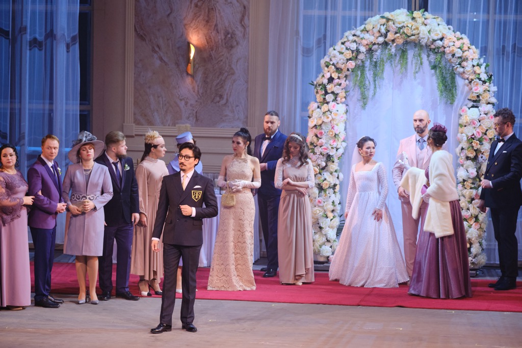 Так что в знак безусловной позитивности в отношении всего ансамбля певцов только и подобает всех их назвать. Синяя Борода – Денис Гречишкин. Булотта – Виктория Кангина. Бобеш – Евгений Балданов. Клементина (его жена) – Екатерина Кочетова. Флёретта (она же Гермия) – Александра Черпакова. Сафир – Эдвард Арутюнян. Пополани – Олег Алексеев. Оскар – Алексей Соколов. «Квинтет» бывших жен – Алёна Бабивская, Виолетта Гришко, Алёна Зафран, Виктория Маслюкова, Анна Киселёва. Покидая героев Оффенбаха, нельзя не заметить, что в постановку внедрены и фрагменты двух его романтических опер. Песня эльфов из «Рейнских русалок» стала известной баркаролой в «Сказках Гофмана», и эта пленительная мелодия звучит теперь в «сцене грез» Булотты в покоях Синей Бороды, в то время как «после загса» бедовая героиня собирается взойти на брачное ложе…