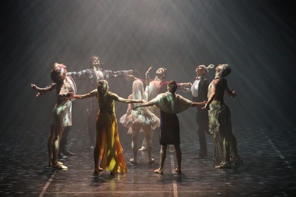 И не так уж и важно, придем ли мы к консенсусу: главное – то, что мы задумаемся. Главное в том, чтобы пережить катарсис, не пережить который при скрупулезном подходе хореографа к драматургии его невербальной истории решительно невозможно! Открытость финала выражена им в извечной сентенции: «Борьба между тенью и светом продолжается». И свет (точнее – партитура света, как уже отмечалось) – базис сценографии пустого пространства театра, построенного на диалектике света и тьмы. На спектакле в Москве (на показе 12 июля) эту незамысловатую, но сложно сочиненную в танце модерн диалектику несли в зрительный зал (в порядке своих антре) Сакихо Кобаяси (Гадкий утенок), Григорий Ботенков (Сизиф), Олеся Алдонина (Кассандра), Юрий Кудрявцев (Принц), Ксения Ляпина (Андрогин), Матвей Никишаев (Диоген), Владимир Брагин (Наглец), Елена Михеечева (Одрин) и последний герой Юрий Романчук (Герой). Артисты балета также были заняты в неперсонифицированных ипостасях Данте и массовке Теней, Людей, Дев и Детей Ветра.