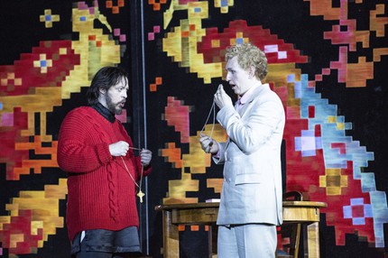 В титульной партии князя Мышкина российский тенор Богдан Волков поднимает планку исполнительского мастерства на очередную недосягаемую для многих высоту. Эталонное звучание, роскошная вокальная техника и виртуозность актерской игры поражают воображение. С медитативной глубиной звучит в исполнении Волкова программный монолог князя Мышкина, составленный выдающимся либреттистом оперы Александром Медведевым из фрагментов «Сна смешного человека» Ф. М. Достоевского, писем Достоевского брату и, конечно, романа «Идиот» с его знаменитыми словами о том, что красота спасёт мир.