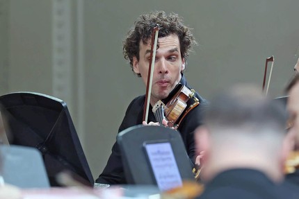 Именно так произошло в Концерте соль мажор для двух альтов, струнных и basso continuo Телемана, где оркестр музицировал без дирижера, как самодостаточный художественный организм, а солистами выступили Никита Кейман и Александра Тельманова. А в Концерте до минор для гобоя, струнных и basso continuo Генделя «мотором» коллектива выступил Илья Мовчан – концертмейстер, который способен повести за собой оркестр в любой момент. Безостановочная динамично-виртуозная нагрузка на гобой в крайних частях чередовалась с трепетным, исповедальным монологом солиста в средней части. Оркестр следовал как строгому барочному стилю, так и заложенной в музыке диалогичности – между гобоем Алексея Уткина и «мовчановской группировкой» скрипок.