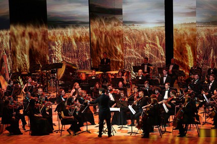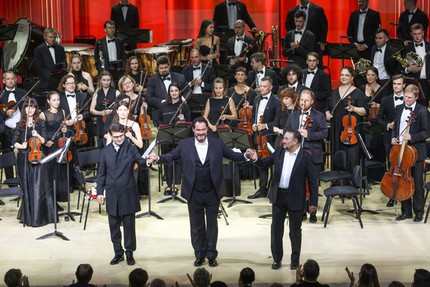 Меломанов этим, конечно же, не удивишь, однако воздействие на широкую публику подобный антураж всегда оказывает явно беспроигрышное. Но как бы то ни было, и тех, и других занять места в зрительном зале заставили голоса и музыка, которую певцы делали под аккомпанемент оркестра. В качестве такового предстал Московский государственный симфонический оркестр. За его дирижерский пульт встал художественный руководитель коллектива Иван Рудин, и этот молодой талантливый маэстро с легкостью и изяществом смог найти общий музыкальный язык и с оркестрантами, и со звездным дуэтом солистов.
