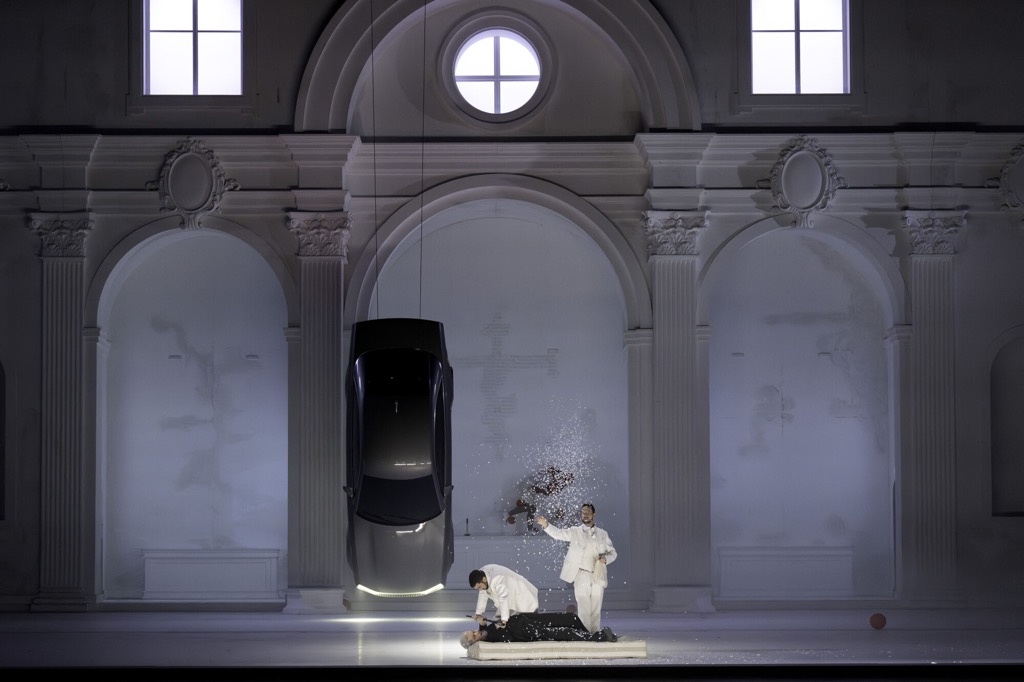 Об особенностях спектакля итальянского режиссёра Ромео Кастеллуччи, созданного по опере В.-А. Моцарта «Дон Жуан» в 2021 к 100-летию Зальцбургского фестиваля, мы уже писали. Возобновления этой постановки ждали три года, и вот, наконец, снова порадовались: режиссёр внёс несколько изменений и в оформление спектакля, и в его мизансцены, но количество вопросов к многослойной символике этого представления не уменьшилось.