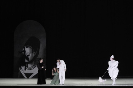 15) Пудели, маленькие и большие, которых выводит на сцену Дон Оттавио, символизируют рост и достижение. Здесь появляется игра с выражением «размер имеет значение», которое поднимает вопросы психологических комплексов, а также социального статуса и успеха. Отдельно можно вспомнить немецкое слово «Pudelwohl», то есть «беспечно радостный»: именно так выглядит в спектакле Р. Кастеллуччи Дон Оттавио.