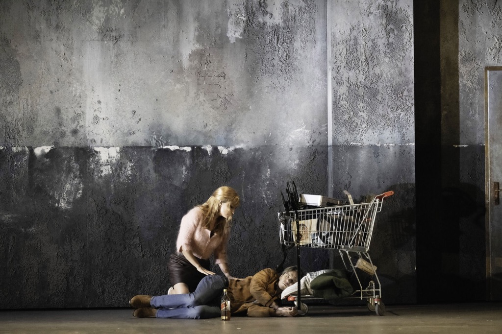 Кроме бетонной стены, на сцене был павильон в викторианском стиле, в котором умирала под камерами кинооператоров чахоточная Антония в стиле Маргариты Готье. Потом показали строительные леса в лампочках… Уж побаловали так побаловали: где бы мы ещё лампочки цветные на досках поглядели, правда? Только на Зальцбургском фестивале по 465 евро за билет.