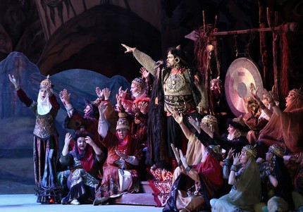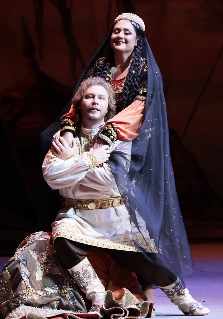Весьма эффектно и музыкально сочно оказалась прорисована и вторая любовная линия оперы – лирически колоритная линия Владимира Игоревича (Кирилл Белов) и Кончаковны (Агунда Кулаева). Исполнители составили изумительный дуэт, блеснув и в своих сольных номерах-ариях, а в данной редакции образ Кончаковы, обретя еще бóльшую масштабность и психологическую глубину, предстал едва ли не ярким бенефисом меццо-сопрано Агунды Кулаевой. В партии князя Галицкого так необходимые ей вокально-рельефный драйв и «разносную» артистичность смог продемонстрировать бас Николай Казанский, но ведь со вторым половецким станом еще бóльшую масштабность приобрела и партия Кончака!