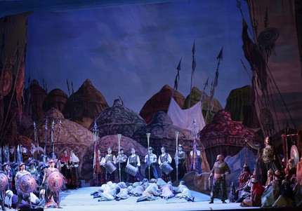 Но прежде чем перейти к музыкальной (и, конечно же, вокальной) части премьерного спектакля, поймем, что же за постановку, полученную как нежданный презент, мы в итоге увидели. Мировая премьера «Князя Игоря», завершенного уже после смерти Бородина (1833–1887) Римским-Корсаковым и Глазуновым, состоялась на сцене Мариинского театра в Санкт-Петербурге 23 октября (4 ноября) 1890 года. А в советский период, как и в Москве в Большом театре, в Мариинском (тогда Кировском театре) была своя выносная икона «Князя Игоря» – постановка парадно-помпезного стиля, которую в 1954 году (вслед за премьерой в Большом) осуществил режиссер Евгений Соковнин (дирижер – Сергей Ельцин; сценография и костюмы – Нина Тихонова и Николай Мельников, хореография Михаила Фокина к постановке 1909 года в возобновлении Фёдора Лопухова).