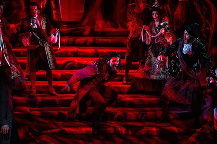 Понятно, что широкая публика пришла на эффектно броское и, на первый взгляд, не вполне укладывающее в эстетику романтической оперы название. Однако для меломанов этот раритет с точки зрения репертуара отечественных оперных театров стал подлинным музыкальным лакомством. Тем более что на сей раз к музыкальной составляющей проекта никаких претензий по части овладения прихотливой стилистикой утонченно-изысканной, но всё же рельефно-сочной партитуры немецкого композитора Генриха Маршнера (1795–1861) не возникло. Всё сосредоточилось в профессионально надежных руках музыкального руководителя и дирижера Максима Валькова (плюс хормейстера Игоря Потоцкого) и было действенно поддержано как музыкантами в оркестре, так и артистами на сцене.