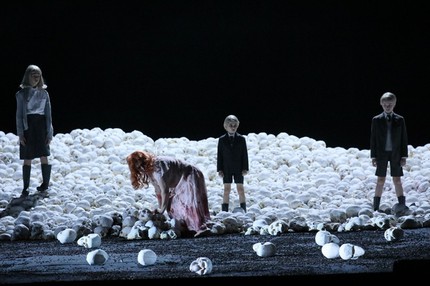 Кроме раздражающих решений хоровых сцен без хора, подвешенных вверх ногами голых тел, разбросанных по сцене муляжей человеческих черепов и невнятных режиссёрских высказываний, сегодня страшно расстраивает низкобюджетность постановки. Когда в главном театре самой богатой земли самой богатой страны ЕС зрителям показывают прозрачную клеёнку вместо декораций, бесцветные современные наряды из бюджетных тканей и какую-то туристическую палатку на авансцене, неизбежно возникает ощущение какого-то обмана со стороны администрации театра.
