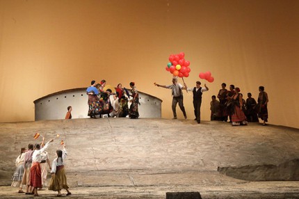 Впрочем, ещё больше мешает странная световая палитра спектакля. Осветитель Франко Марри то устроит посреди полудня форменный закат, то кромешную ночь, то вдруг снова солнце брызнет. И всё это за какие-то минут пять. Но и эти перепады освещения можно пережить. Проблема оперных ходульных постановок в том, что они идут от текста, а не от музыки.