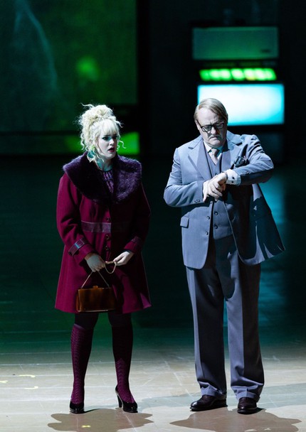 Образ стихии, помещенной в аквариум, неслучайно находится строго напротив витрины, в которой неизбежно оказывается и Катерина, как рыба в том самом аквариуме, но только без воды. Этот стерео-символ – тоже важная находка постановщиков, помогающая объемному восприятию всей коллизии. На сцене много узнаваемых элементов из других постановок (подвижный павильон, деревянные панели облицовки, перенос действия в 1970-е годы), но все они подчинены одной задаче: визуализировать полемический пафос партитуры. Катерина здесь не жертва социальных рамок или религиозного мракобесия. Катерина становится жертвой собственной стихийной природы и этического максимализма.