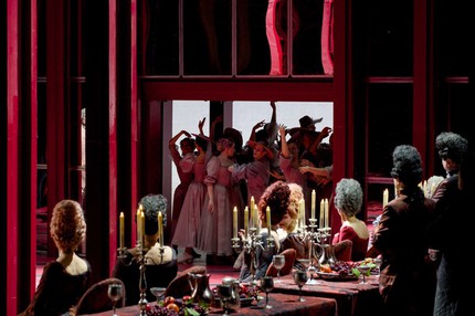 После импровизации Шенье в первой картине на тему любви (точнее – на тему ее неуместности сейчас, когда страна стоит на пороге перемен в пользу чаяний простых людей) к шоку собравшихся в доме графини, добавляется демарш Жерара. Именно он, переняв стезю отца, становится лакеем в доме графини, и именно он после того, как не нашедший отклика у надменных аристократов на свою импровизацию Шенье покидает прием, вводит в залу толпу нищих, предъявляя светскому обществу настоящий народ. Финал картины – изгнание Жерара, которому теперь открыт путь в революцию, а за кадром – след в душе Маддалены от нечаянного визита Шенье, который впоследствии как раз и приведет к роковому исходу…