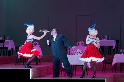 По поводу этой остроты, воплощённой в новом спектакле Дамиано Микьелетто на сцене венского музыкального «Театра Ан дер Вин» с некоторой топорной незатейливостью, стоит сказать отдельно.
