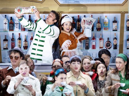 Сценография Эдоардо Санчи масштабно и живо иллюстрирует перенес действия обеих опер в 1960-70-е, но почему-то лишь трансляция по телевизору легендарного полуфинального матча чемпионата мира 1970 Германия-Италия оказывается единственной находкой, вызывающей в зале живой отклик. Мизансцены спектакля помещены в тратторию, наполненную официантами, детьми с мороженым, клетчатыми скатертями, спагетти, пиццей, эспрессо, макиато и, конечно же, телевизором. Но этот набор штампов про Италию в крикливо-ярких костюмах Даниэлы Кернильяро не делает спектакль Микели таким же хитом, каким стала на последнем «Евровидении» пародия «Эспрессо макиато» эстонского певца с русско-украинскими корнями Томми Кэша.