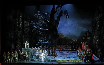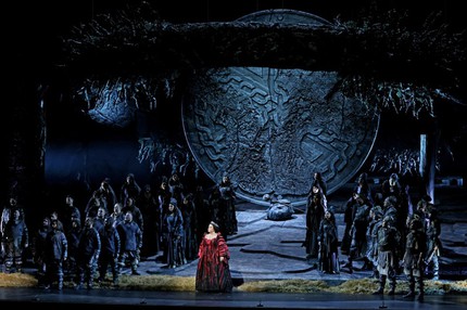 В опере бельканто в голосах певцов важно раствориться не только оркестру и дирижеру, но и режиссеру как фигуранту, ответственному за выбор и общее направление визуально-мизансценической постановочной концепции, и режиссеру Сергею Новикову это удалось. Призвав вместе со сценографом на службу природные ландшафты и артефакты, избежав любых интерьерных бытовизмов (даже сцены в «покоях» Нормы – это всё те же экстерьерные планы, лишь с условно обозначенной атрибутикой), в финале оперы лесной мир друидов, в который надменно вторгается чужак-римлянин, вдруг аллегорически расширяется едва ли не до космических масштабов! До масштабов Вселенной, которая в свое огненное жерло принимает и вероотступницу Норму, и ее демона-искусителя Поллиона…