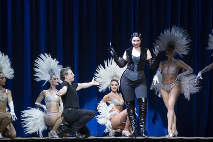 В костюмах также царит пересортица от ренессансных дублетов до джинсов и смокингов и нарядов из кабаре 1930-х годов. Танцовщицы из шоу-ревю во время «La donna è mobile» с перьями и эстетикой ретро-шапито выглядят, прямо скажем, глуповато: будто оказываешься в курятнике на карнавале.