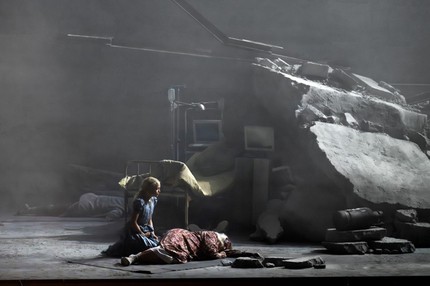 Мужеподобная Ольга в пародийно блистательном исполнении контртенора Арьехи Нуссбаума Коэна словно соткана из пустых и пошлых фраз. В филигранной фразировке слышится неувядающая усталость и бесконечная готовность ныть.