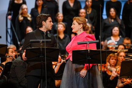 В данном случае речь идет о концертных исполнениях, но и в подобном формате они предстали абсолютно самодостаточными даже без средств театральной выразительности, и в этом заслуга не только оркестра, хора и дирижера, но и солистов. В «Риголетто» ударная тройка персонажей в рамках любовно-родственного треугольника – это Риголетто (шут при дворе Герцога), Джильда (его единственная дочь, составляющая смысл жизни любящего отца) и циничный распутный Герцог, воспользовавшийся наивностью и чистотой Джильды, которая искренне полюбила и ради спасения жизни возлюбленного отдала свою жизнь.