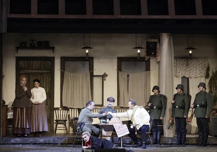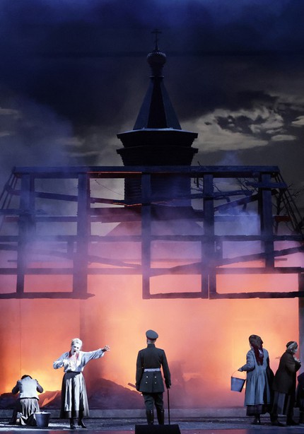 В контексте обеих постановок речь как раз идет и о том, что концепция постановочного реализма – при всём различии сюжетов – в них одна и та же, и о том, что сценографически-костюмный декор становится тем важным фундаментом, на котором режиссер, принимая эту концепцию как руководство к действию, посредством мизансцен выстраивает драматургию своих спектаклей. Но многомерность и многоплановость фабулы «Семёна Котко», оперы XX века, рассказывающей о драматических – даже трагических – событиях недавнего прошлого, очевидна, и, с точки зрения сквозного, непрерывного переключения между обилием картин и пластов, избранный подход Большого театра к оформлению спектакля при задействовании поворотного сценического круга предстает абсолютно естественным и оправданным.