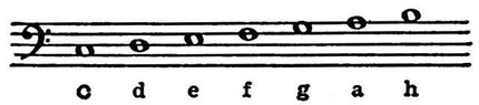 В настоящее время диатонический звукоряд в пределах октавы имеет следующее буквенное обозначение:
