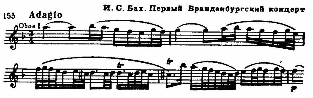 Потом является возвышенно-поэтический контраст, и в скорбном Adagio (d-moll) гобой и скрипка piccolo, затем виолончель и басовая виола исполняют своего рода «музыку Страстей» — дивную элегию с каноническим дуэтом на тему патетически-импровизационного склада: