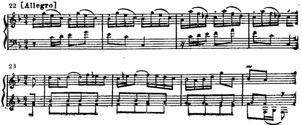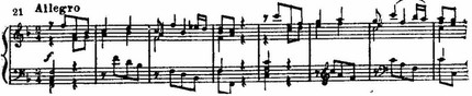 В Allegro Итальянского концерта ведущая роль принадлежит первой теме. Жизнедеятельная, полнокровная, она наделена силой, сообщающей энергию всему последующему движению.
