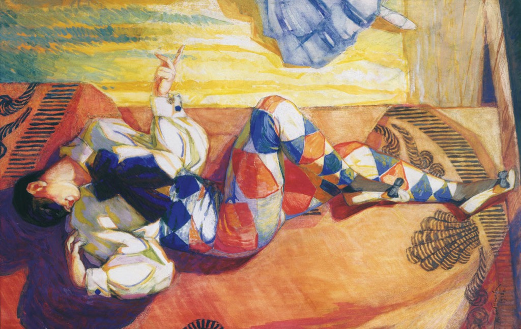 Арлекин. Пестро наряженный Арлекин налетает на Пьеро. Арлекину весело, он насмехается над унылым неудачником, тормошит его, хватает за длинные рукава, крутит, вертит и убегает, так же быстро, как появился. Пьеро падает у рампы.