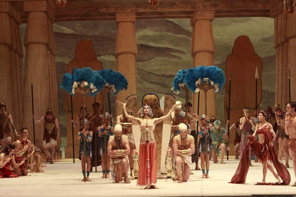 Царицу ждет иная встреча. На роскошной колеснице появляется римский полководец Марк Антоний — победитель эфиопского царя. Увидев египетскую царицу, он дарит ей эфиопскую корону и множество захваченных пленных рабов. Клеопатра венчает Антония лавровым венком. Обняв царицу, воин ведет ее к Нилу, где их уже ждет галера.