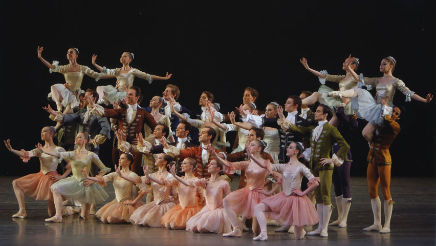 После исполнения пятнадцати вариаций наступает кульминационный момент. Вторая часть балета заметно отличается от первой. Здесь доминируют танцы трех пар, сольные вариации ведущих танцовщиков и танцы кордебалета из двадцати человек. Ближе к концу спектакля все танцовщики в нарядных костюмах, напоминающих придворные туалеты XVIII века, возвращаются на сцену и исполняют финальную вариацию. Первый танец, которым начинался балет, в финале исполняет та же пара, но одетая теперь в современные костюмы. Круг замкнулся...