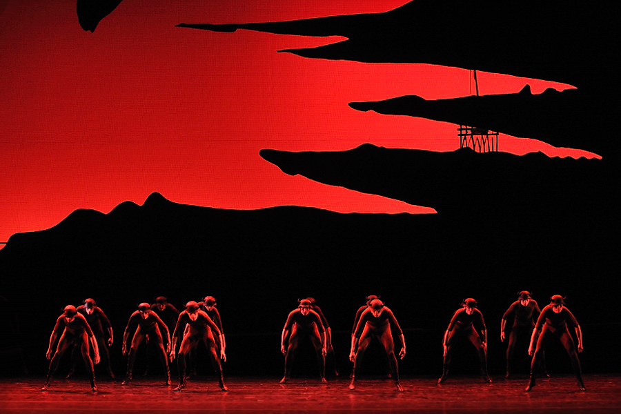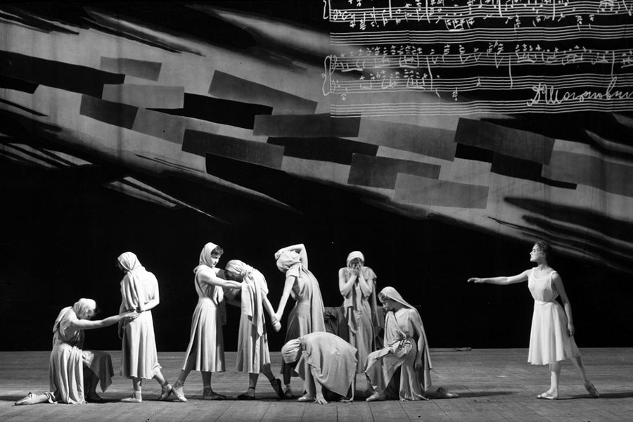 Тему нашествия композитор вводит исподволь, и она осознается не сразу. Хореограф предлагает выразительное адекватное решение: пары на сцене, как бы не веря случившемуся, некоторое время продолжают покачиваться. Осознав беду, женщины словно виснут в плаче на тех, с кем прощаются навсегда. Подруги прижимаются к любимым, их пластика становится тревожной. Юноши отступают в глубину сцены и смыкают ряды. Упругий прыжок с энергичным поворотом, чеканный шаг, вновь прыжок — солдаты идут на войну.