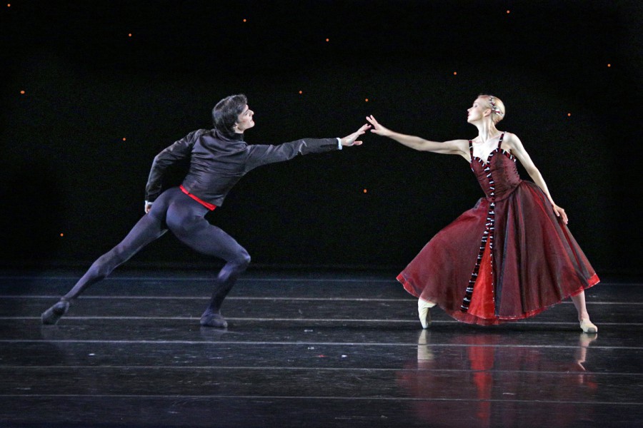 Более официальную и торжественную атмосферу второго дуэта создают люстры над сценой. Кажется, что действие происходит в освещенном бальном зале, все двери и окна которого широко распахнуты. Музыка звучит нежно, но посреди танца девушка вырывается из рук партнера. Когда она возвращается, танец приобретает импульсивность — до тех пор, пока девушка не замирает в объятиях партнера головой вниз; ее руки и ноги трепещут, страсть утихает. В конце дуэта юноша поднимает ее, держа лицом к себе, и затем убегает.