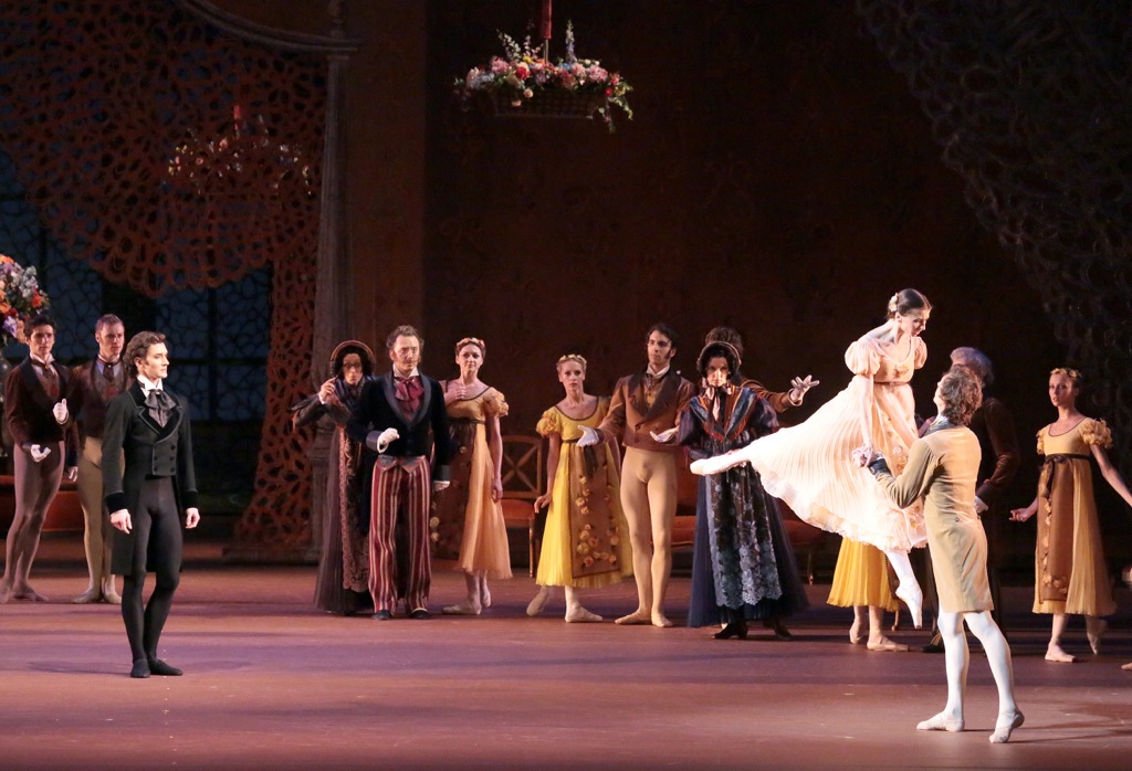 По мотивам романа в стихах А. Пушкина «Евгений Онегин» на музыку П. Чайковского (в аранжировке К. X. Штольце), сценарист и балетмейстер Дж. Кранко, художник Ю. Розе.