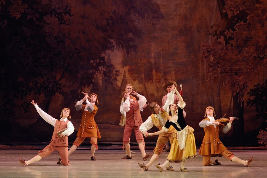 Единство и целостность симфонического замысла соединяются в «Спящей красавице» с необычайным богатством и разнообразием танцевальных форм. В каждом действии мы находим своего рода парады танцев, создающих красочный фон для развертывания драматургической фабулы. Отдельные танцы объединяются в более крупные построения по принципу ритмического и выразительного контраста, образуя циклические формы сюитного типа. Сам по себе этот принцип не был новым для классического балета, но в «Спящей красавице» хореограф и композитор отказались от безличных общих танцевальных формул, не имеющих связи с той или иной конкретной ситуацией и поэтому легко поддающихся переносу из одного произведения в другое: в каждом из танцев запечатлен определенный характерный образ. Таковы вариации фей в прологе, сельский танец и «вальс примирения» в первом действии, группа старинных танцев (менуэт, гавот, фарандола) во втором действии и почти все третье действие — этот, по определению Асафьева, «непрерывно развертывающийся в своем волшебном цветении праздник танца».
