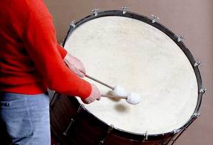 Барабан (вероятно, тюрк.) (итал. tamburo, испан. tambor, франц. tambour, англ. drum, нем. Trommel) — ударный инструмент; представляет собой полый корпус (или раму), служащий резонатором, на котором с одной или двух сторон натянута кожа. Звук извлекается с помощью удара по мембране (наиболее распространённый способ) или трения. Высота звука Б. не учитывается, и он выполняет главным образом тембровые и ритмич. функции. С древнейших времён использовался как сигнальный инструмент, а также для сопровождения танцев, воен. шествий, у нек-рых народов — религ. обрядов. В разл. разновидностях встречается у большинства народов мира. Особенно велико значение Б. в музыке народов Африки (см. Африканская музыка).
