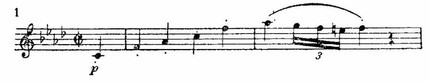 Дальнейший переход к побочной партии и сама она — свидетельство чрезвычайной целеустремленности мышления Бетховена. Вот нисходящие ходы и синкопы пятнадцатого и последующих тактов: