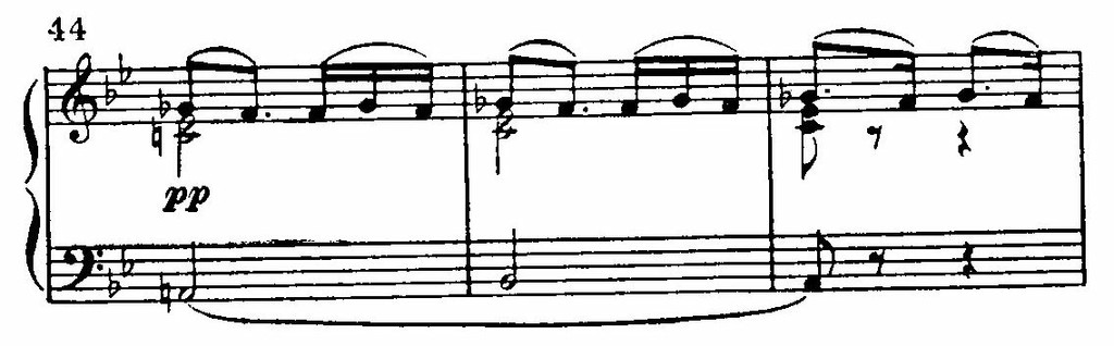 Как доносящиеся покуда издалека, сквозь топот приближающегося войска посвисты флейт, звучат восходящие фигуры правой руки: