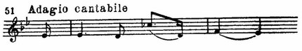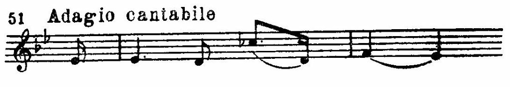 Итак, в первой части Adagio Бетховен дает целый ряд оттенков и тенденций основной эмоции. Смены гармонических красок, регистровые контрасты, сжатия и расширения ритмически содействуют выпуклости всех этих оттенков и тенденций.