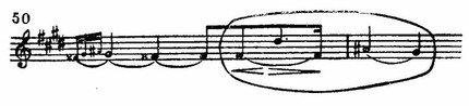 Однако в ней начинают проскальзывать элементы воли, зреющей решимости. Они, в свою очередь, исчезают с поворотом в си-минор (т. 15), где вслед затем выделяются акценты до-бекара (тт. 16 и 18), подобные робкой просьбе.