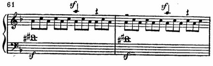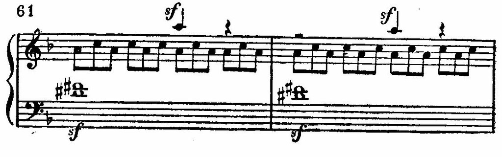 Это место особенно ясно предвещает стиль «аппассионаты» — столь форсированных звучностей не было ни в «патетической», ни в «лунной».