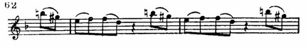 возврат фигур начала главной партии, но теперь еще более беспокойных благодаря паузам (музыка как бы начинает «задыхаться» от волнения). (Невольно приходит на память другой гениальный образ подобной взволнованной прерывистости — главная партия первой части сонаты b-moll Шопена.)