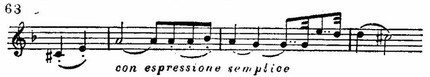 Но вскоре (с т. 30) жалоба переходит уже в тревожные, резкие восклицания. Крайне напряженна внутренняя борьба начал в тт. 38—39, использующих надежное драматическое средство — уменьшенный септаккорд: