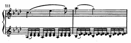 Как и предыдущая, соната ор. 110 очень «романтична» и содержит весьма характерные в данном плане частности: они особенно бросаются в глаза рядом с некоторыми отзвуками былой активной бетховенской «драматургии».